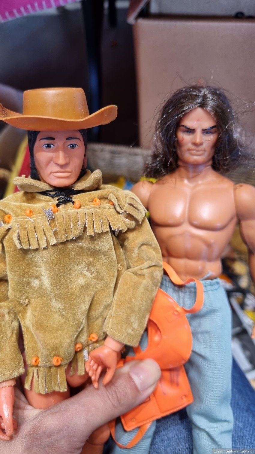 А красавец — он маттеловский, из линейки экшен-персонажей Big Jim. По паспорту он Кровавый Лис/Чёрный Бизон, отрицательный герой дикозападной линейки по мотивам Карла Мэя.