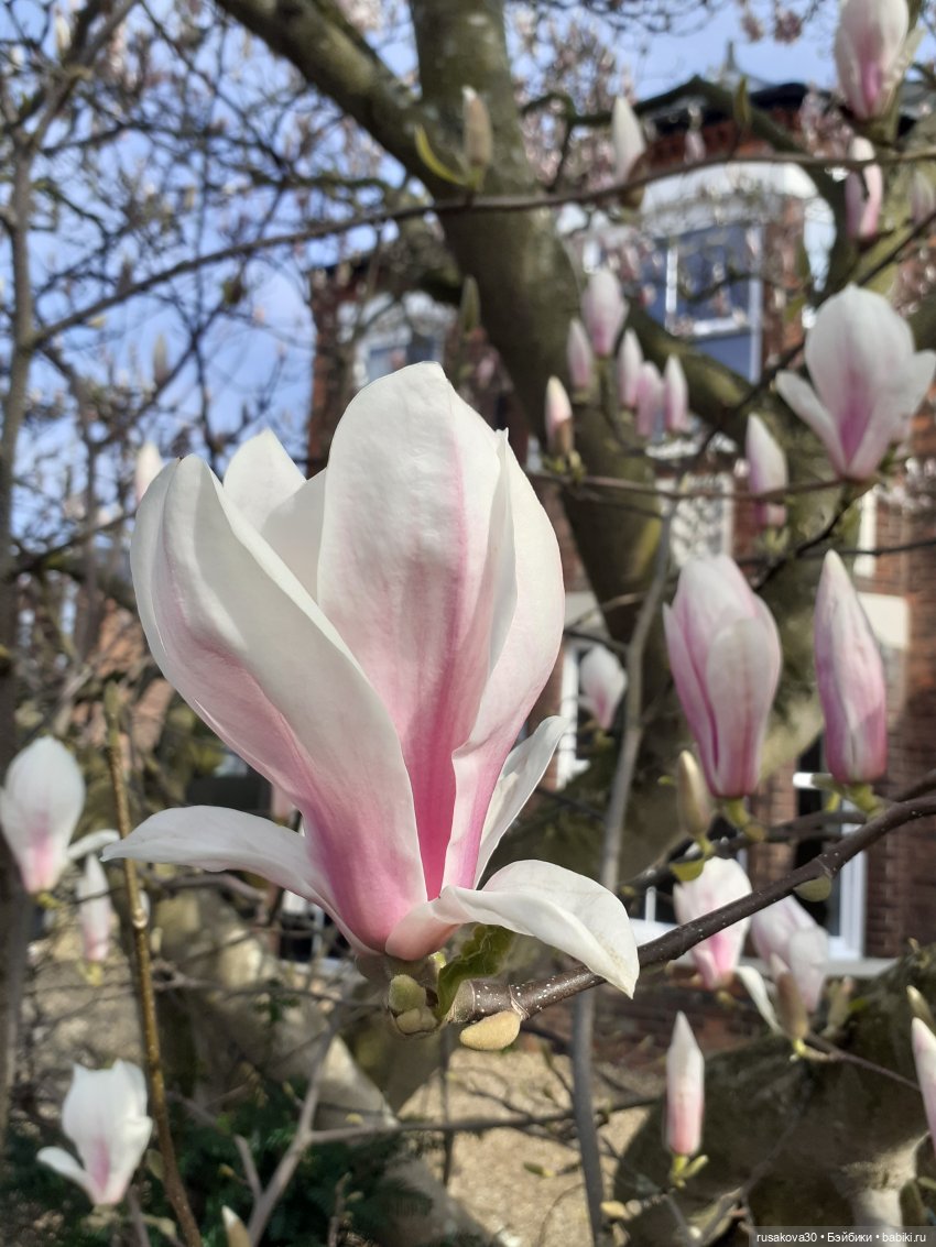 А эта магнолия — чудо! Растет только у одного дома. Цветки как блюдца!