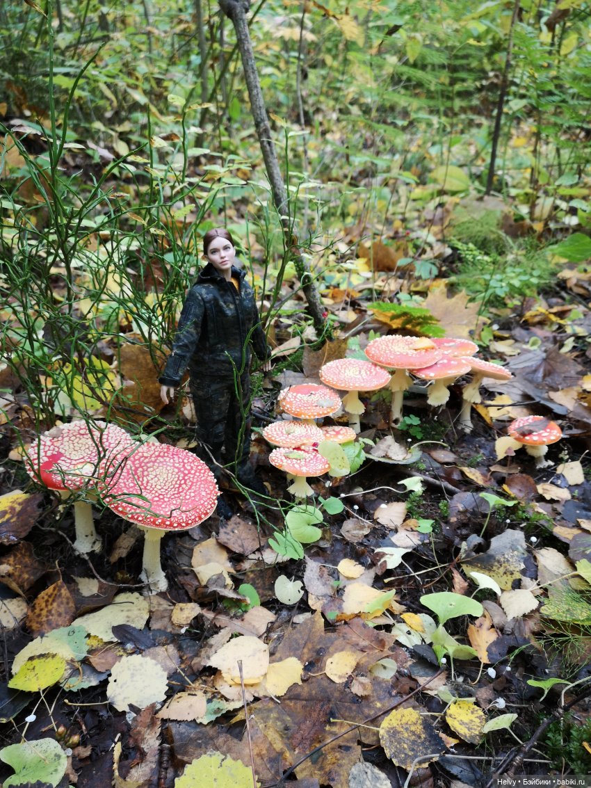 Мухоморы очень нарядные грибы, для фотографий с куклами — лучшие декорации.