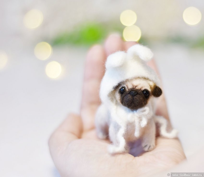 А знаете, знакомый мопсик! На ЯМ у меня такой давно отложен в избранное, в шапочке лягушонка) Но он маленький очень для нас. Вашей Вареньке очень подходит, а у нас все куклы 1/6, он на ладошке уместится ))