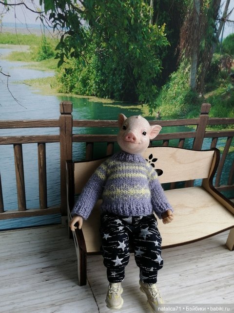 Сначала нарядила его рубашку и снуд от Come4arts, добавила бриджи, которые я шила девочке Come4arts Лоле – они для него настоящие брюки получились.