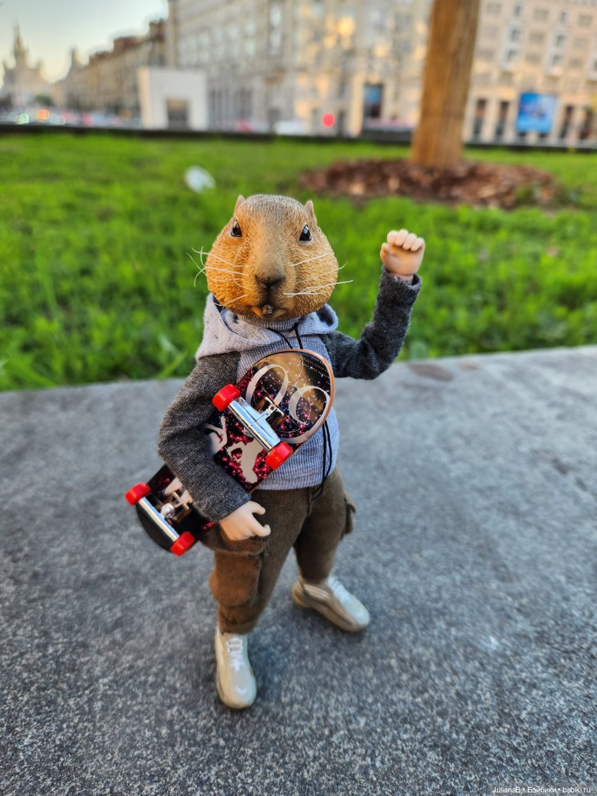 На самом суслике – или хомяка, или бобре, или сурке…не уверена, что знаю, кто это – были надеты молдированные кроссовки и хомячьи лапки.