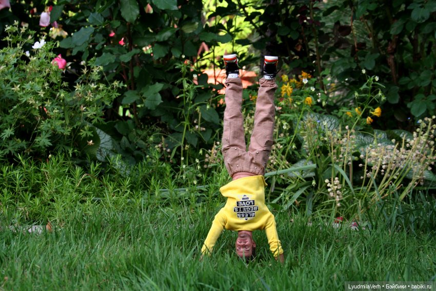 Обычно подобные комбинезоны я вяжу более маленьким куклам, снабжая разными кармашками и умильными аксессуарами...) Но хотелось посмотреть, как он сядет на
