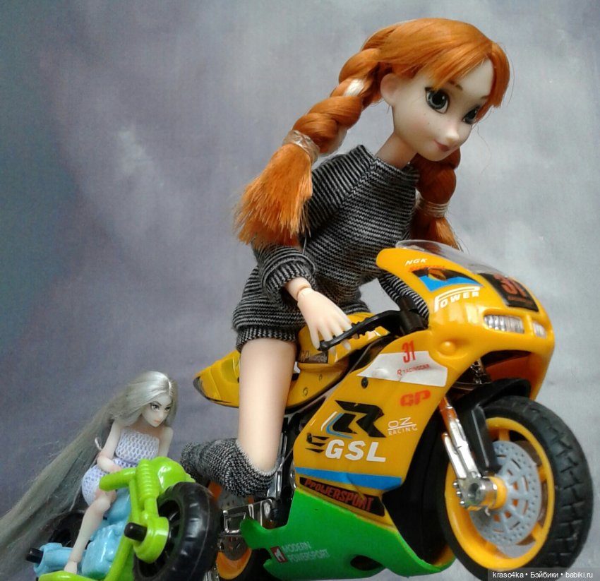 Мы работаем, у нас строечка на участке, и как-то пока не до кукол стало. Но давненько куплен был вот такой мини мотик, и Татка, смотрю, катит его. Мы, значит, на выход из дома, а она нам: