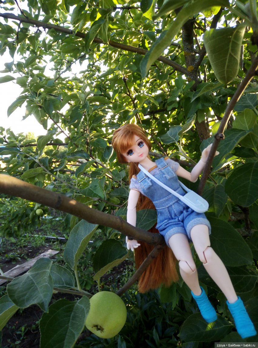 У меня дача за окном, причем в этом году какие-то неожиданные урожаи яблок и ооочень жарко, так что кукол и выносить не хочется :))
