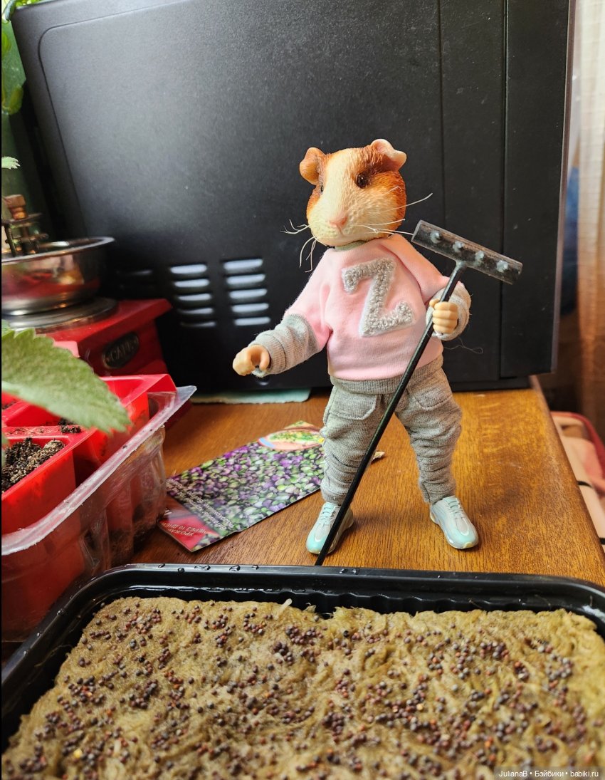 Поскольку я всегда продумываю историю персонажа, то как-то сразу к суслику «прилипла» профессия ботаника (все же помнят, что каждый суслик — агроном:) и следом родилось имя — Редька. Как только достала её (да, у меня барышня) из коробки, то сразу поняла, что она именно Редька и никто другой.