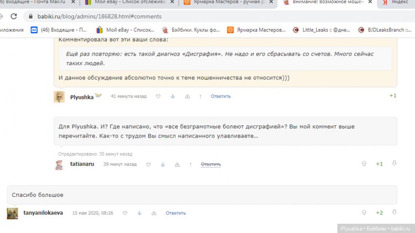 Продолжать беседу прошу прощения, не намерена. Потому что мне хватает того что сейчас вк. И я хочу думать о куклах, а не о сраче. И не том что везде мошенничество. Вам к сожалению ничего не дано понять, у Вас своя линия. У Вас все мошенники, кто не в рамках. Всего хорошего!