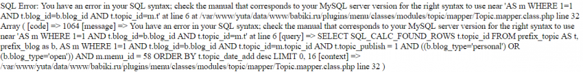 SQL Error: You have an error in your SQL syntax; check the manual that corresponds to your MySQL…