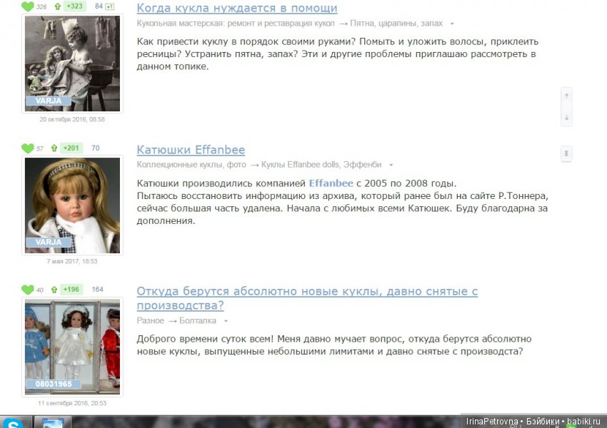 Обратите внимание, где по дате выстроился топик Катюшки Effanbee" — между сентябрем и октябрем 2016 года, а в ленте он опубликован и дата стоит «07 мая 2017»