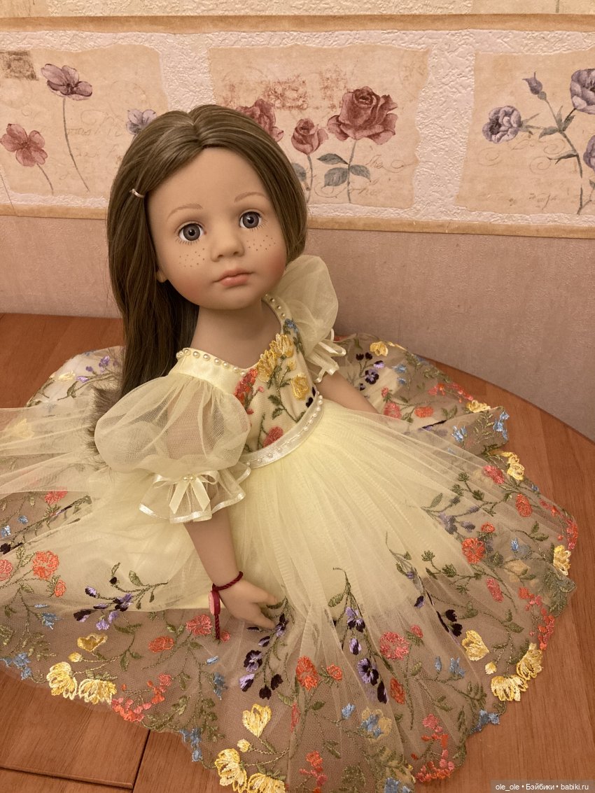 Элла прелесть, из всех вышедших кукол с этим молдом — она меня больше всего зацепила. Какое-то особенно красивое сочетание цвета глаз и волос… Спасибо за такую прекрасную гостью! А платье-то у неё какое роскошное, настоящая принцесса или цветочная фея :)