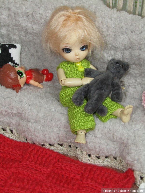 А еще сейчас случилось страшное — Мю тоже кое-что узрела, а именно — умопомрачительное Ксюхино белое платье… Сейчас заставит осваивать вязание, а у меня еще 2 с половиной платья на барбейский формат не дошито)))