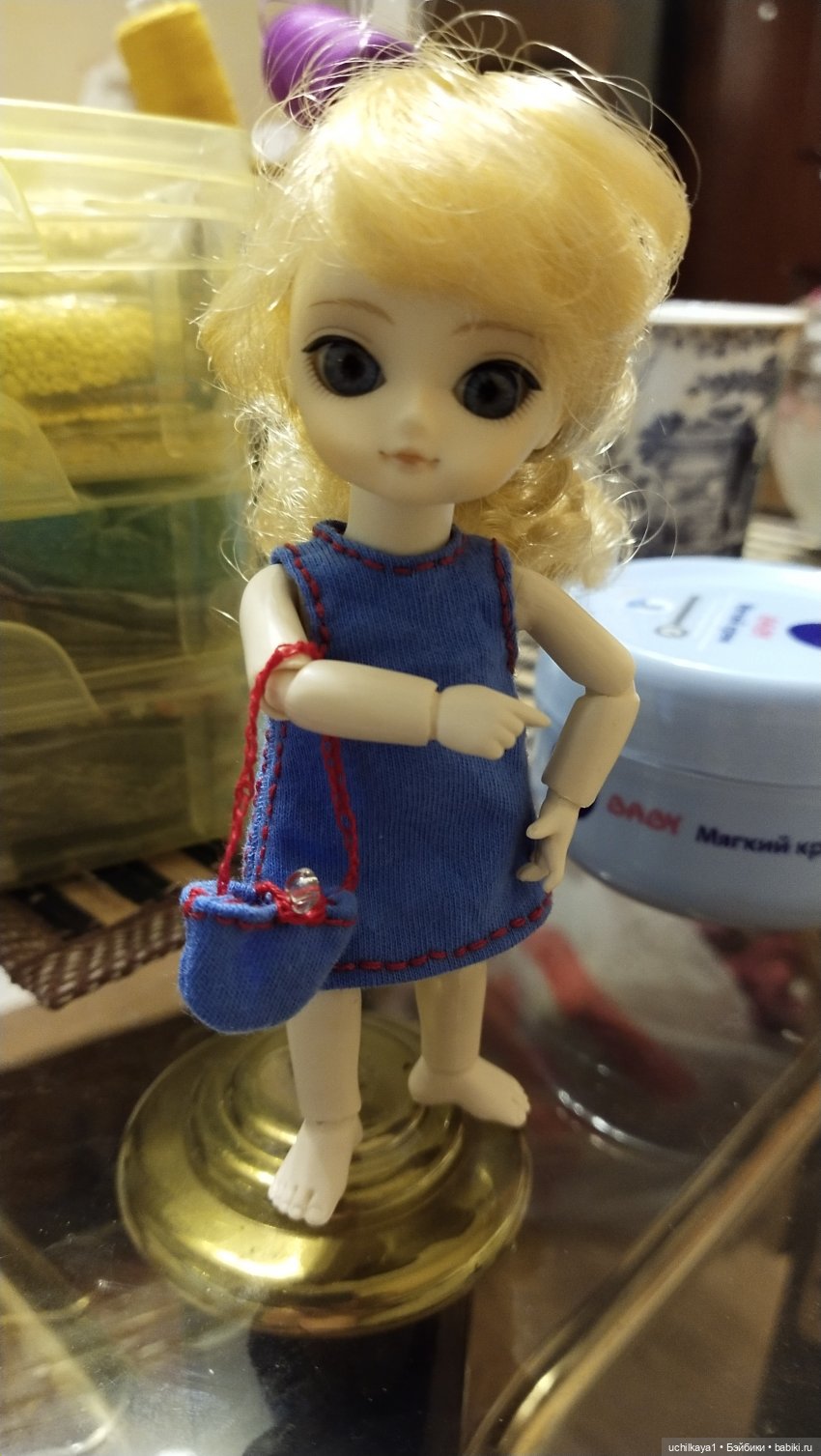 Уже несколько лет меня преследовала навязчивая мысль: «мне обязательно нужна аишка». Почему именно Ai? Я кукломаньячка. Куклы с собой всегда. На работе в сумке, на отдых с собой таскаю, на прогулку перед сном… Больших таскать неудобно. Слишком мелких, типа реаликов, вечно боюсь потерять (особенно ладошки-ступни). Да и жалко фейрилендовских куколок — то мейк повредишь, то пожелтеют от постоянного тисканья. Хотелось кого-то чуть крупнее 10, но меньше 15 см, с крепким мейком, не тщедушным, как у милимок, тельцем. Куколки Ai показались просто идеалом) Но — увы, они больше не производятся. Облазив интернет в поисках хотелки своей, я наткнулась на наш сайт и поняла, что аишки здесь все-таки водятся, иногда всплывают в шопике и, судя по отзывам счастливых обладателей, просто прекраснейшие карманные жители. И вот, благодаря прекрасному человеку nikavait я стала одной из счастливиц, у кого такой житель имеется))) Куколка превзошла все мои ожидания. Она удивительно живая в руках, приятная и смешная малявка.