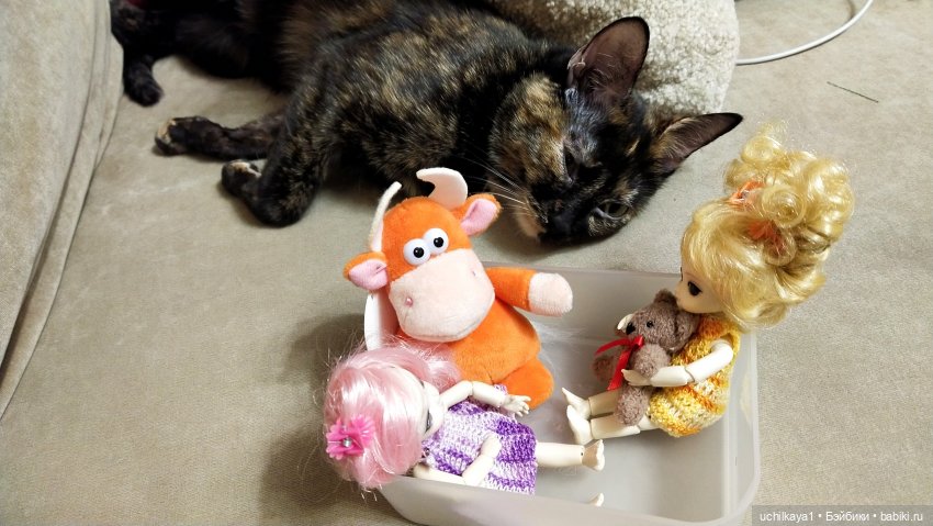 Девчонки мои очумели от восторга! А Лолита сразу в символ года вцепилась и решительно заявила, что пусть его и Мире прислали, но любить его будет она, Лолита)
