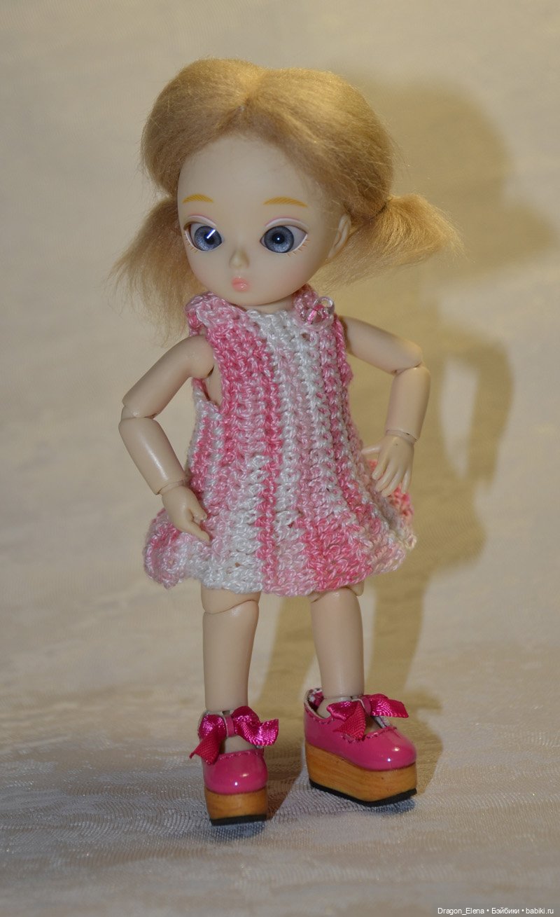 Первым связался простой комплектик. Платьице, панталончики, туфельки и кофточка.