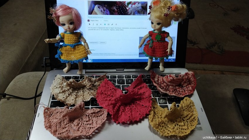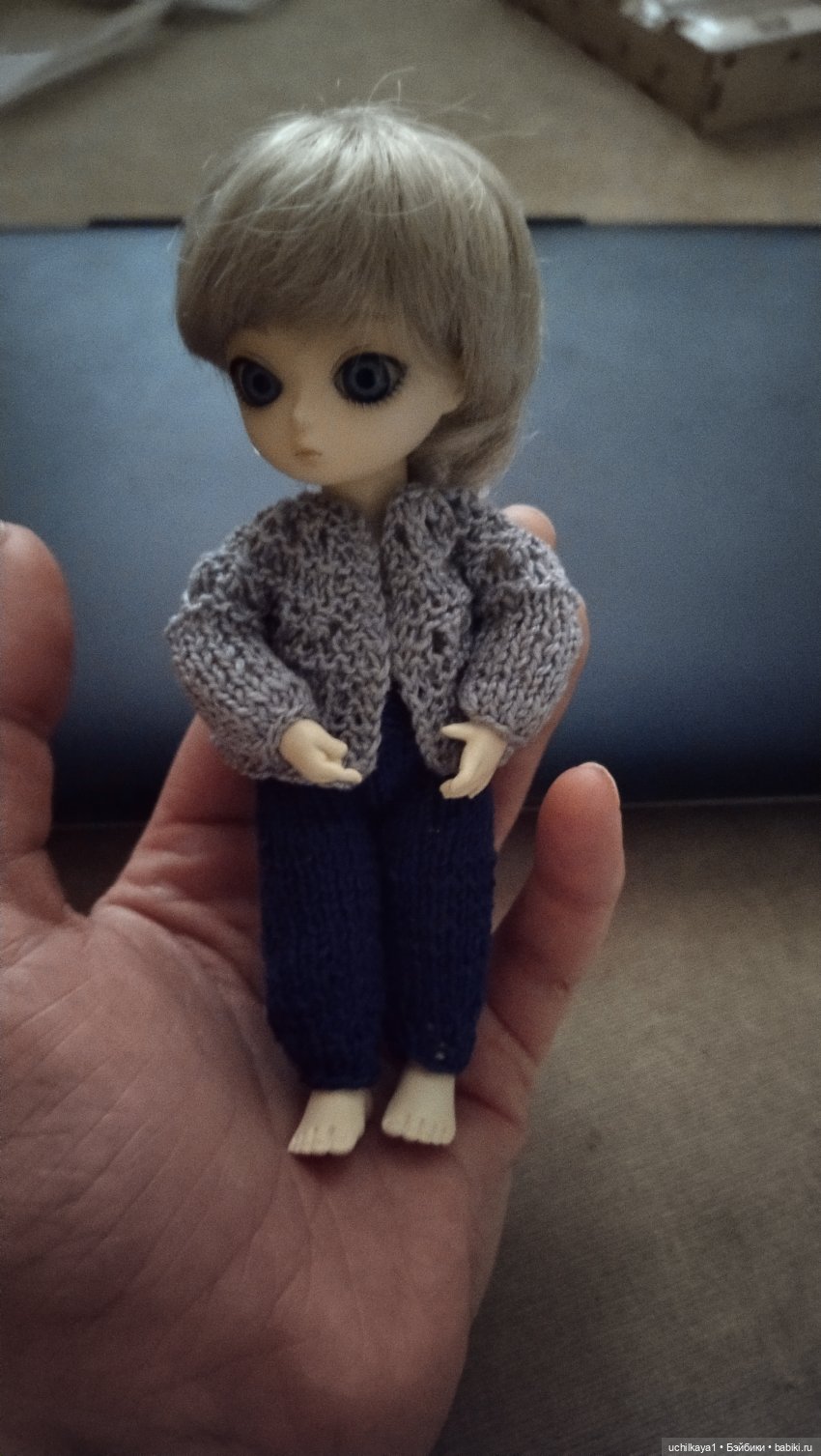 Увидев в интернете фото красавиц Иплхаус, стала интересоваться, что за куколки такие. Искала, где можно купить. Так попала на бейбики. Видела Pukipuki. Малышки понравились, но цена не очень. И вдруг Ai-Циния. Тот же формат, но цена устраивала. У хозяйки было 2 такие куколки. Заказали и стали ждать. И не просто ждать, а готовиться к встрече малышки. Дочка сделала мебель, покрасила её, связала одеяло, сшила постельку. Я связала пару платьиц. И вот наступил день приезда малышки.