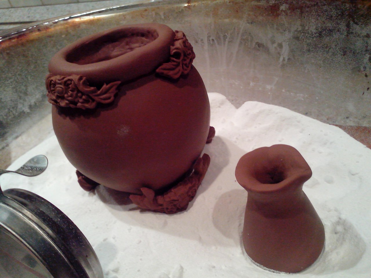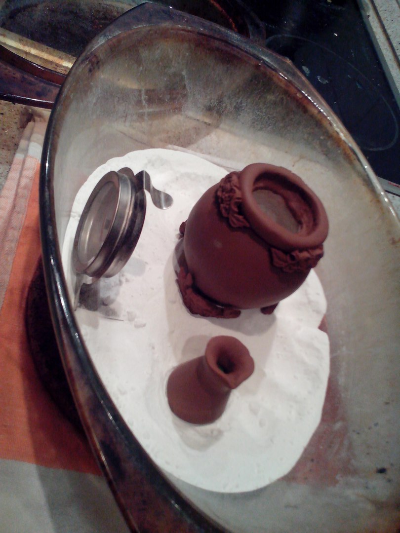 А это у нас практически готовая печка для варки кофе, почти со всеми элементами декора. А еще пока что корявенькая заготовка для турки!