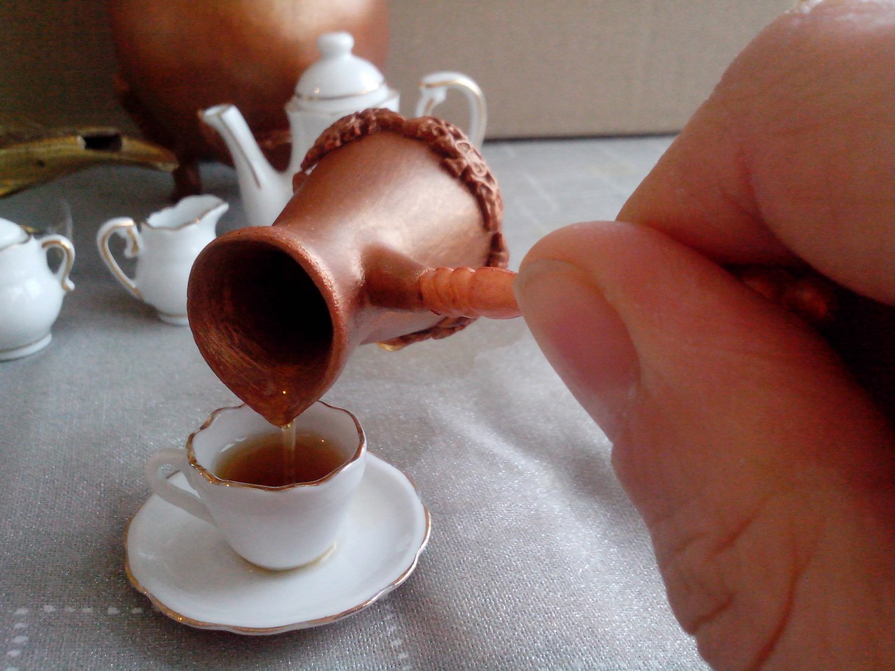 Набор для варки кофе на песке в будуар куклы. Своими руками. Масштаб 1:4