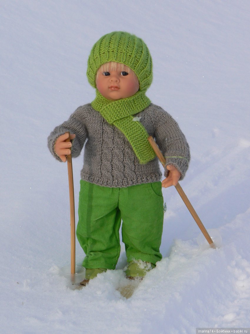 За основу я взяла мастер-класс Юлии Герман, немного его переработала под имеющиеся дома материалы, размер куколок. В мастер-классе Юлии лыжи — сувенир, а мне надо было, чтобы на них катались, это я тоже учла при изготовлении. Но в основном делала также.