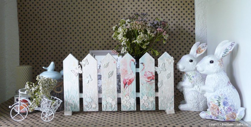 Но передняя сторона заборчика! Нет моему взгляду объединяющего элемента декора. Как нет? Он всегда под рукой.