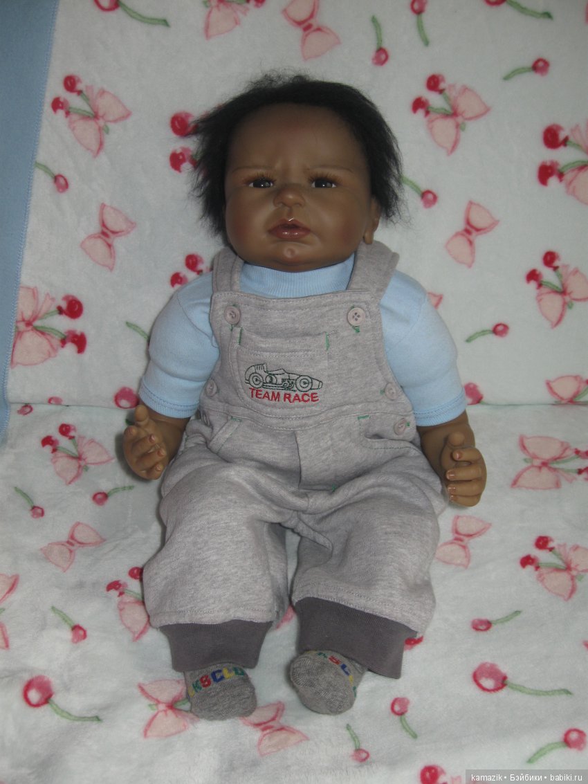 И третья Аяша (NPKCOLLECTION-doll, 17-inch, Native-American-Indian-doll, Vinyl-Silicone-cloth, Black-Skin-Doll, made-in-China). У нее очень милые ножки. Ей принадлежит амулет, одеялко, соска и бутылочка. А вот выражение лица мне не удалось передать: она улыбается, хитренько так. :))