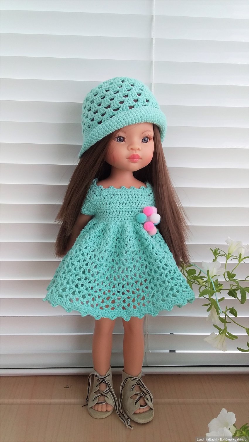 Я тоже из этой пряжи связала наряд Паолке, коючком не очень вязать, спицами лучше получается