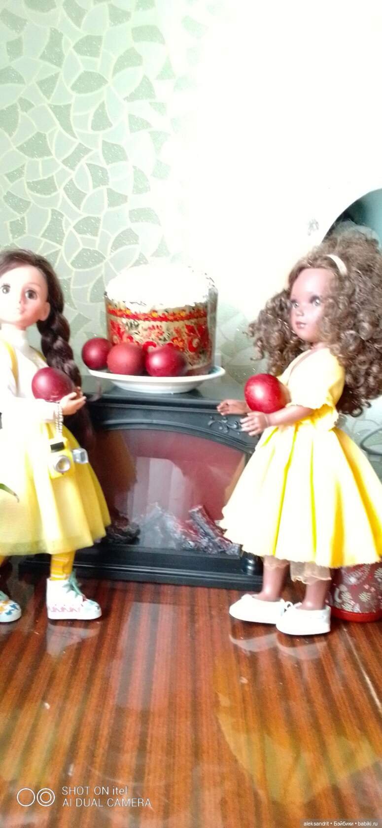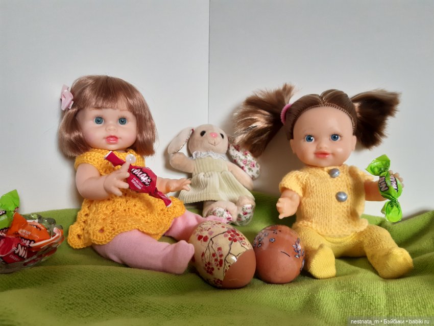 У нас детвора с утра делает обход села… заходят в дом и говорят радосно" Христос Воскрес"… Им отвечаю «Воистину Воскрес»… И протягивают яичко… битьса… Достаем от пасхи крашеные яца начинаем битьса по очереди… у кого сломается тот и забирает яичко.Вот и нынче также была целая стайка детей… Потом они пожелав здоровья всем и счастья отправлются в следующий дом,.собрав хороший урожаи яиц конфет иц и сладостей собираются группами- если тепло идут на природу или по домам… Ну и решила показать что и у меня куклы пришли и принесли весть ну и заодно познакомиться с новыми друзьми, побещала что сделаю зайцев… Муж сказал они смешные… ну косяков наделала, но хоть немного походят на пасхальных зайцев в следующи раз будут лучше…