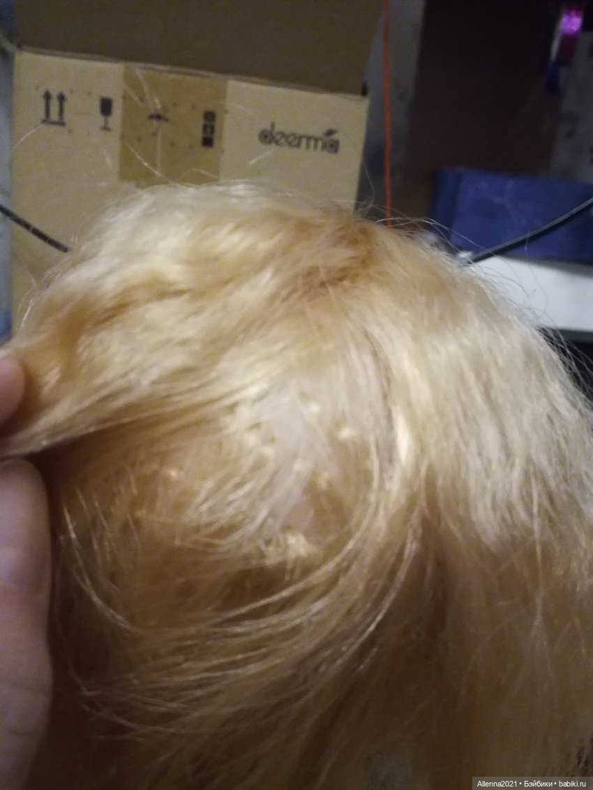Стоит сразу отметить, что кукла в целом хорошая, ничем не пахнет, нормальная для такой цены. Идеально для детской игры: довольно крепкая, симпатичная, недорогая, размер 25-26 см. Не коллекционная, конечно. И есть огрехи: прошивка волос под прическу «мальвина», т.е. на полголовы; ножки из жесткой пластмассы, возможны наплывы и выступающие швы (см правое колено)