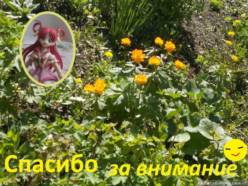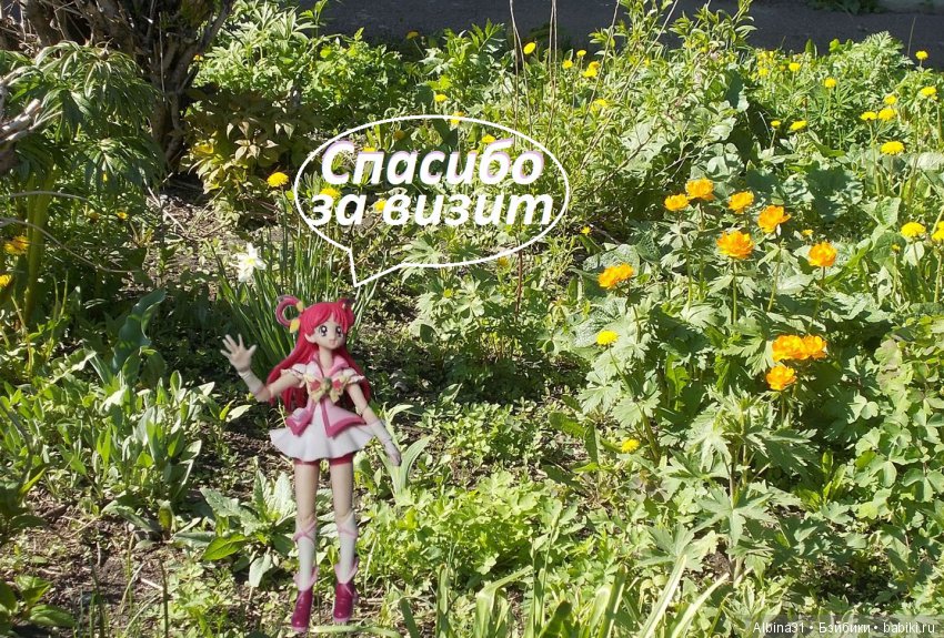 Буду откровенна — вышло «вырви глаз». Уж лучше на фоне бумаги для скрапбукинга, как на первом фото. А так — ни куклу, ни природу не разглядишь.