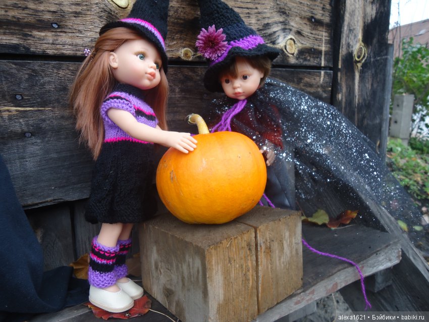 Я шила к Хеллоуину уже много разных нарядов для кукол. Были платья для Вихтелей и Химочек, для весновских кукол, для Братц и Мамачап. В этом году я решила не шить платья, а связать свитерочки и шляпы ведьм для Азоночек. Надеюсь, что вам они понравятся! И весёлого Хеллоуина!