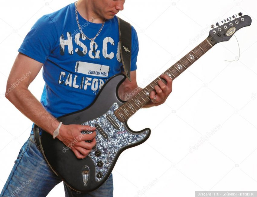 Очень хороший антураж, но гитару вы ей в руки не так дали…