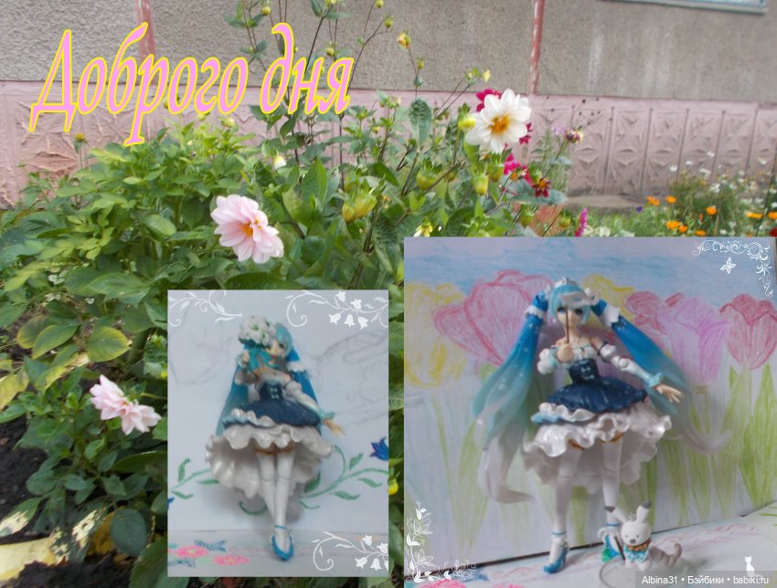 Эх, фотоаппарат совсем не смог передать моё видение, как красиво сочетались эти цветы с Микушей :)