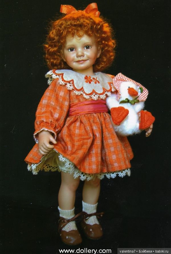 Куклу эту мы случайно увидели в одной из публикаций Марины rusakova30, и она нам так понравилась, что я спросила у Марины, что это за кукла. Мы узнали только что ее автор- Ann Timmerman, а выпустила ее фабрика Ashton Drake. Но даже зная это, я не смогла найти ни одной ее фотографии в интернете, даже в альбомах фэйсбука Эштон Дрейка, где больше всего фотографий кукол их производства.