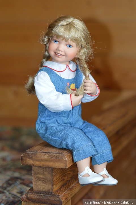 Такая необычная, маленькая ( ведь мы привыкли к куклам Gotz). И такая веселая. Ведь большинство кукол имеют задумчивое или просто спокойное выражение лица, а эта прямо заставляет улыбаться, когда на нее смотришь. Имя мы дали ей Джуди. Есть у Энн Тиммерман похожая кукла только с рыжими волосами и в другом аутфите, конечно.