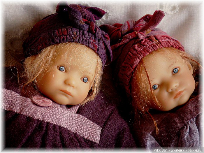 Сегодня хочу показать самых забавных коллекционных кукол из моей коллекции. Это клубные мини куколки замечательного мастера A. Himstedt — близняшки Мирте и крошки Кати с Лизхен. Все девочки не больше 25 см, имеют мягконабивные тела и виниловые конечности с очень красивой и детальной лепкой. Волосики- мохеровые парички. Ручная роспись лица.