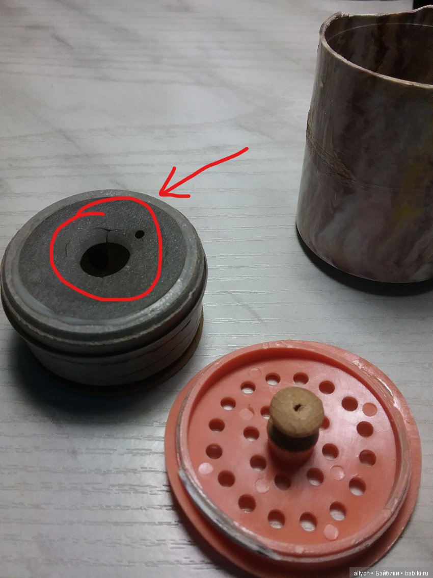 Затем осмотрели на наличие повреждений. Выяснилось, что на главной внутренней детали — цилиндре, погнут и отходит язычок, а на обратной стороне повреждена пленка