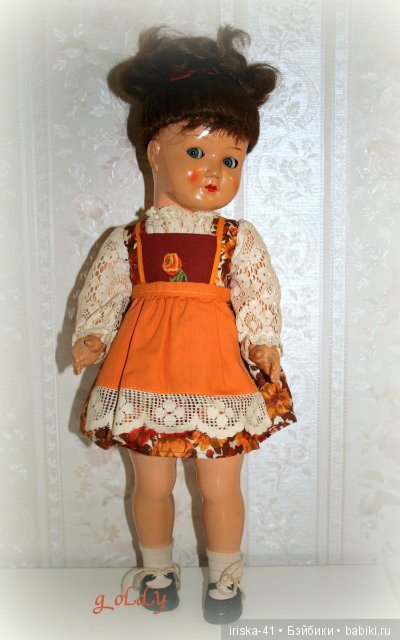 Еще ранней осенью приехала ко мне маленькая миленькая малышка, которая подкупила меня своей трогательностью. В начале своего «кукольного» пути я не могла определиться с приоритетами, с тем, что я хочу купить и т.п. Так она оказалась у меня, мне было ее очень жалко. Хотелось дать ей новую жизнь. Правда, долго определялась с платьем, не все ей подходило, в результате нашла кусочек старого поплина. Парик прежний пока не приводила в порядок, руки не доходят. Ну, в общем, не судите строго, вот что получилось, а кукла мне очень полюбилась. Фото до и после.