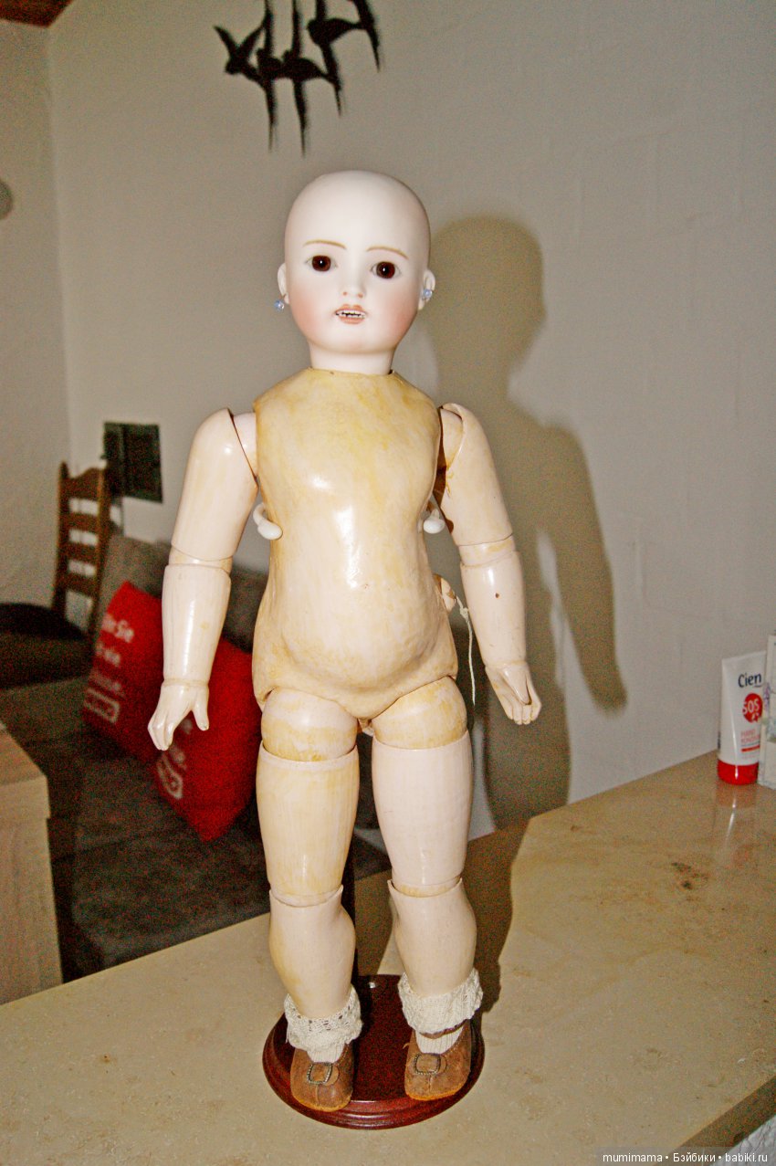 Хочу сегодня показать невероятно редкую барышню от Ernst Grossmann, отца — создателя деревянно шарнирного тела, его патент был первым. Очень жаль, что оригинальные тела от Гроссманна не сохранились, вероятно из за хрупкого поворотного шарнира в талии, поэтому Почти все малышки Гроссманн продаются на ранних французских телах, куколки производились для французского рынка. Натали очень ухоженная, в красивом наряде и антикварной обуви. Ладненькая, очень хорошо держать в руках. 50 см мой самый любимый размер. Натали — редкое исключение у нее оригинальное тело со штампом Гроссмана, работающая голосовая коробка. Тело покажу в комментах
