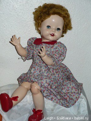 Я, честно говоря, к американцам вполне ровно дышу… Но тут увидела пару лет назад одну замухрыжку… И она меня, как водится, пленила… Композит, 40е гг, но сохран так себе. Купила не раздумывая. Пришлось нести к реставратору, ибо ну в очень непристойном виде была. Обошлась она мне… страшно сказать по итогу(сама кукла, почта из Америки, реставрация), вобщем по цене антикварку почти. Очень хотелось докопаться до родословной. И таки нарыла: оказалась ранняя Мадам Александр и на ебее цена ошеломила, поэтому полюбила её ещё больше)))