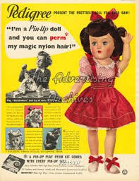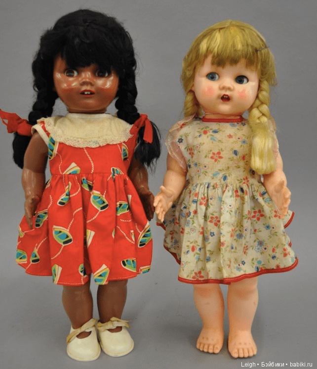 Были и еще более редкие куклы, Pedigree Beepers, у которых на животе была пластина, сменяющая цвет их флиртующих глаз. Нажимаешь раз — глаза синие, два — карие) Удивительные 50-е годы.