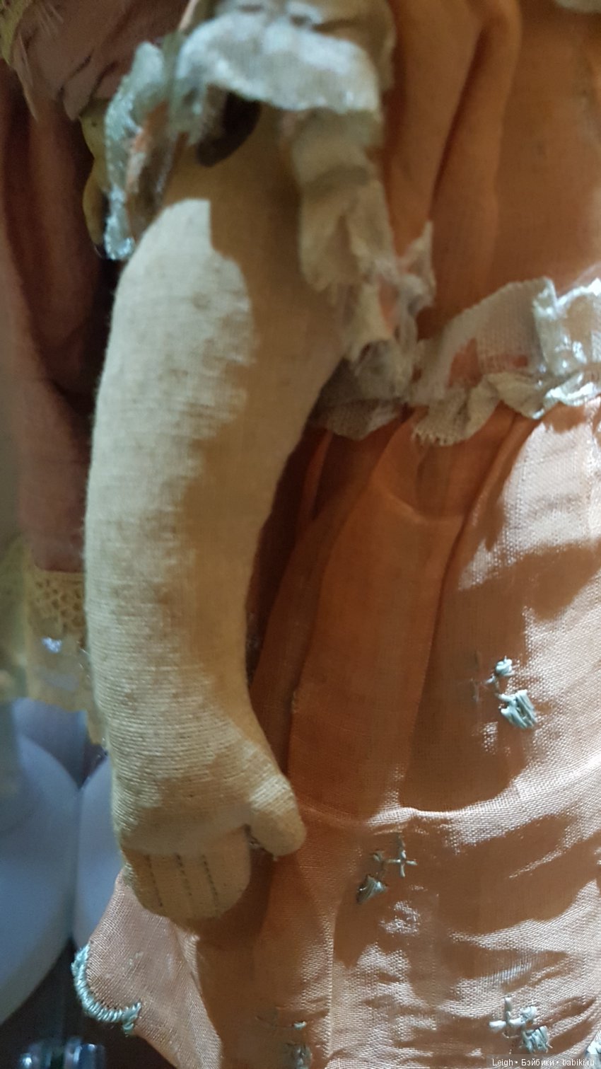 Кукла старая, папьемаше,32см роста, клеймленная но… безрукая вовсе… И зачем я её купила-ума не приложу… Посмотрела в эти глаза… Несчастные, но в то же время такие… знающие себе цену… Но это было когда-то давно, когда она была мила, кокетлива, надменна… А потом… Долгие годы забвения, пренебрежения, небытия… Мне стало её жаль, купила, не раздумывая ни минуты! Недёшево, надо сказать честно. Мнения моих любимых сокукольниц разделились: одни говорят, классная, правильно сделала, это так интересно, подаришь ей новую жизнь! Другие говорят диаметрально противоположное, но об этом не буду…