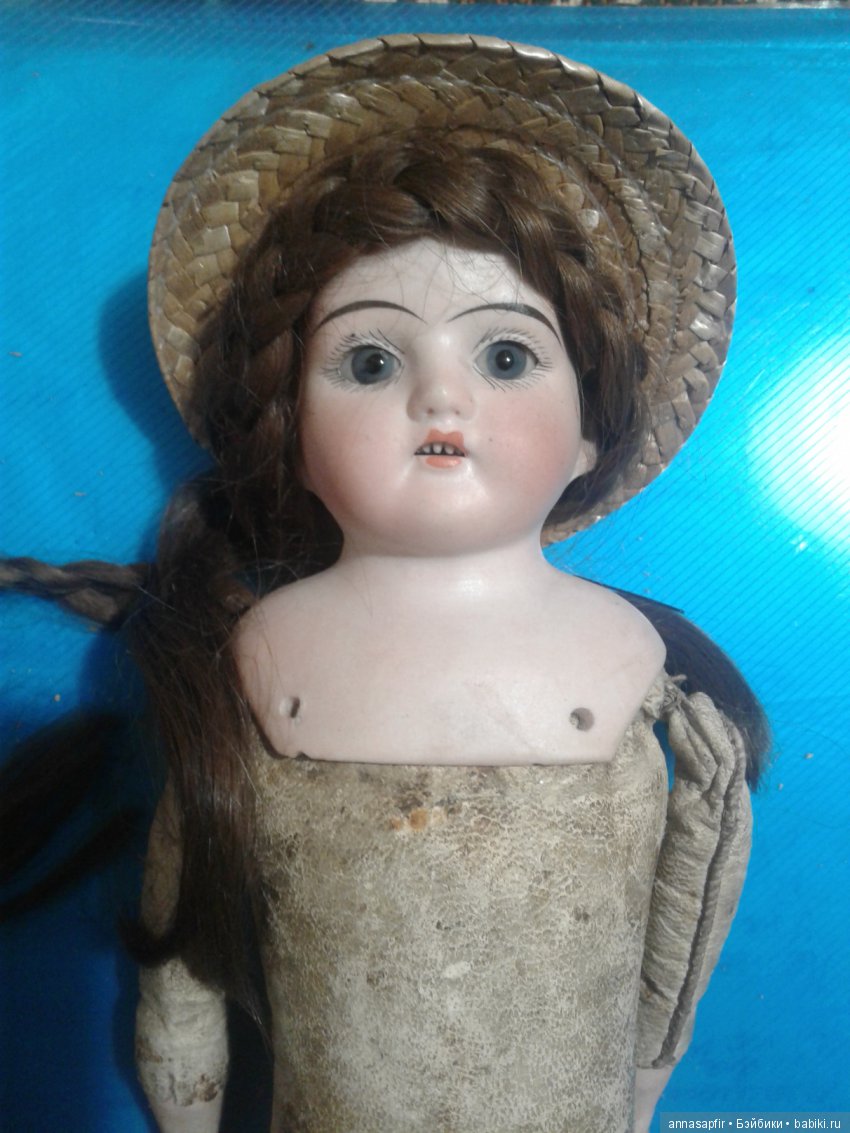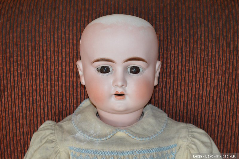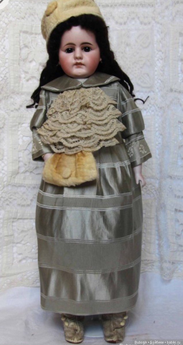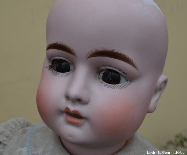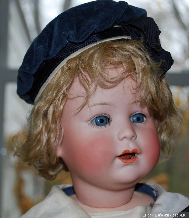 Основные и самые интересные молды — 1900, 1901 (я не встречала даже в Интернете) 1902, 1906, 1909. То были годы выпуска. Часто на них также стоит маркировка DEP, тогда куклы могут стоят на французских телах. Но в большинстве случаев мы видим и покупаем этих кукол на кид телах. Признаюсь, я не очень люблю кид тела в первую очередь не потому, что из них часто сыплются опилки, а потому что ручки висят как плети и шеи часто не видно. Потом также трудно подобрать такой кукле красивый наряд. Они не могут позировать так хорошо, как композитки. Но в то же время именно у Эрнста Хойбаха встречаются прекрасные глазасто-бровастые индивидуальности, которых хочется в свою компанию антикварочек. Они придают коллекции пикантность и заметно отличаются от остальных немочек.