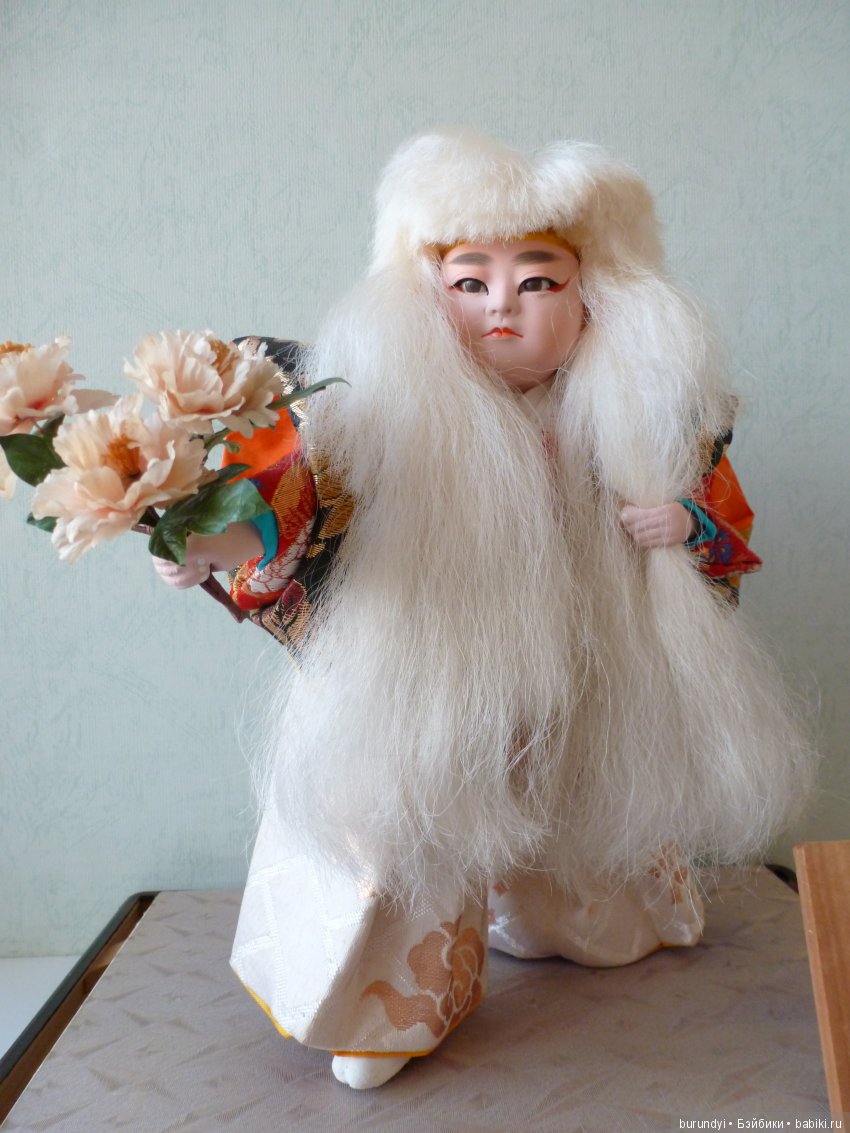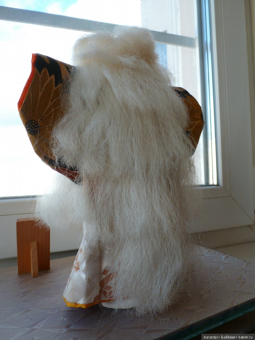 О настоящей японской кукле я мечтала давно… не о ширпотребе, и не о дешевой подделке, одетой в синтетическое подобие кимоно… а о самой настоящей игровой кукле сделанной Мастером, изготовленной из гофуна, с тончайшей каллиграфической росписью, с настоящим шелковым нацинальным халатом и поясом оби… с типичной смешной прической «под горшок» из натуральных, жестких, как одёжная щетка, волос. И ещё мне было необходимо -чтобы кукла была МОЯ, чтобы совпадали наши вибрации…