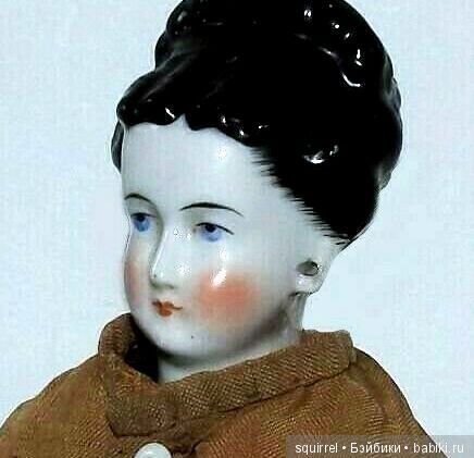 а, если присутствовали фарфоровые руки-то белые, как голова.(фарфоровые руки у Чайн появились после 1870 года (????) Еще о теле-кожа внутри «тушки» дублирована тканью-это видно в «подмышке», набито крошкой пробки.А вот в ногах ткани нет.Чем чистила, и как подклеивала-напишу, если интересно.Ремонта было мало.Запаха-практически нет(кукла из коллекции доброй женщины Никки, которая в 90-х работала в Москве, и, в память о приятно проведенном в России времени, согласилась выслать куклу.) Теперь о том, когда, примерно, куклы такого типа могли производить.Вот тут, как в песне..«я милого узнаю по… ПРИЧЕСКЕ!» Впервые прическа с «плоской вершиной» была показана на Лондонской выставке в 1862году.