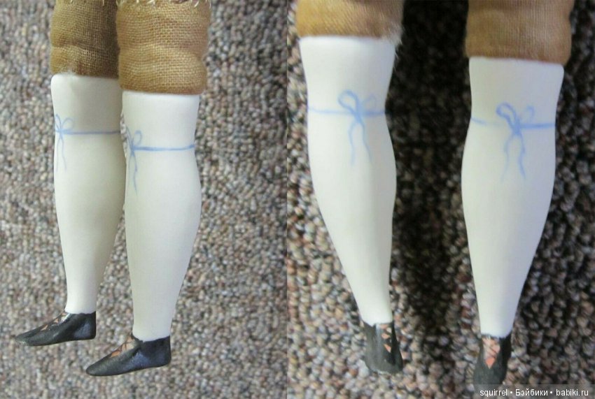 куклы. Лента для подвязки и бант окрашены в зеленый цвет. Куклы принадлежали сестрам и являются полностью