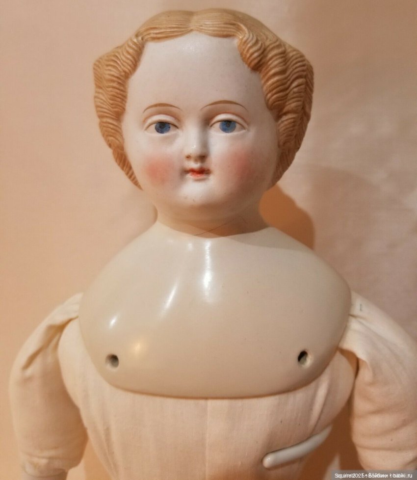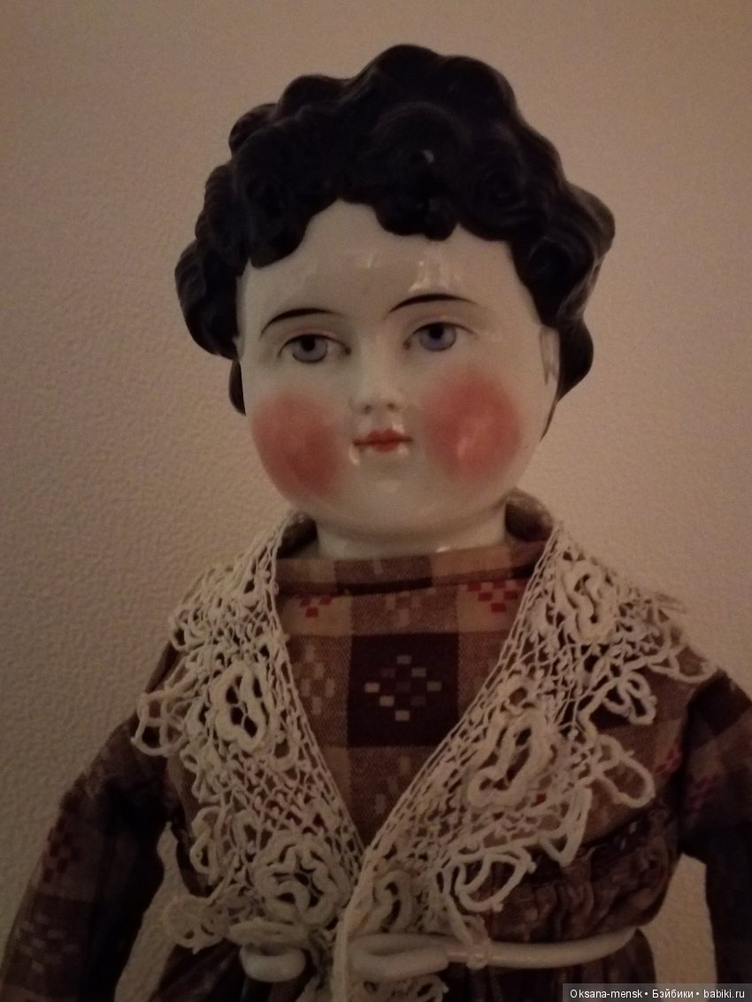 фото-частично из неё, частично-из интернета… ну и мои, конечно.Куколка несколько необычна, она не совсем Чайна, вернее-совсем не чайна. Это «кукла типа Париан»(так принято называть таких кукол.)Хотя, она возможно и настоящий париан. Но, как пишет Лидия Рихтер-«чтобы отличить нетонированный бисквит от париана, надо держать в руках последний и сравнивать...» Держать в руках мне нечего-так как в наличии (из неглазурованных и нетонированных) только бюстик и эта кукла.Голова куклы очень тяжелая-ощущение, что она цельная внутри, как камень.В плечевой пластине по три отверстия, но их можно только прощупать, т.к. голова вклеена в не родное (я так думаю) тело.