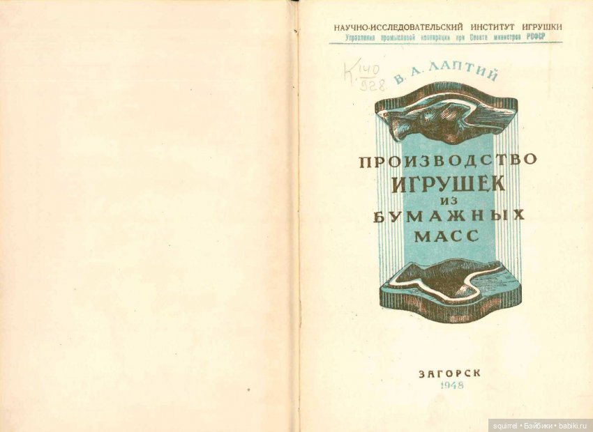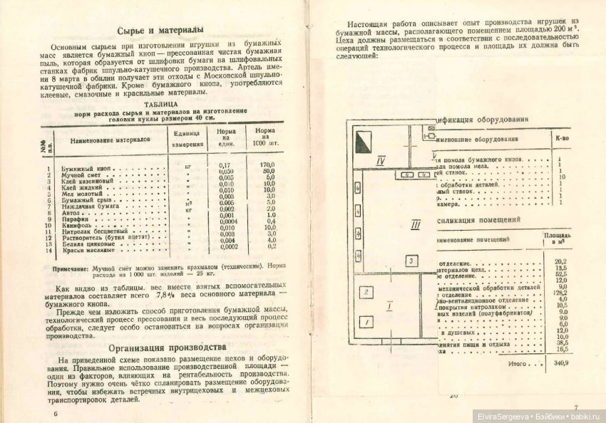 Книга была пособием для тех, кто решился организовать аналогичное производство. Здесь рассчитаны площади цеха (340 квадратных метров, включая душевую, комнату для перекусов, лако-красочный отдел, и склад готовых изделий), противопожарные нормы, мощность вытяжек, производительность при работе в три смены, (25 рабочих могли производить до 9000 готовых изделий в месяц), борьба с браком, и так далее… В 1946 году был сделан качественно новый шаг — в артели наладили производство кукол полностью из пресс-опилочной массы. Кукла была гигантской — 75 см. Она имела механический пищик — тянешь за веревочку, кукла плачет. А еще кукла хлопала глазами! Звали ее Маринка.