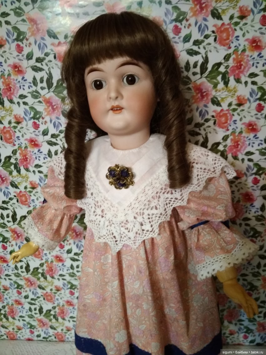 А я очень рада тому, что эта малышка, которая, кстати, была моей первой «большой» антикварной куклой на полноценном шарнирном теле, поселилась у меня. Помню, что при первой встрече я была от неё в тихом восторге. И благодаря ей не разочаровалась в «антикварках», как это иногда бывает с новичками. И мне очень хочется дать совет тем, кто еще только готовится приобрести свою первую «антикварочку»: не ходите за три моря!) Возможно, «ваша» куколка намного ближе, чем вы думаете. Чистенькая, аккуратная, без всяких неожиданных «сюрпризов». Сидит и ждет именно вас. Как ждала меня моя синеглазая Соня. Да и приедет она гораздо быстрее и будет упакована, как положено, а не как бог даст.