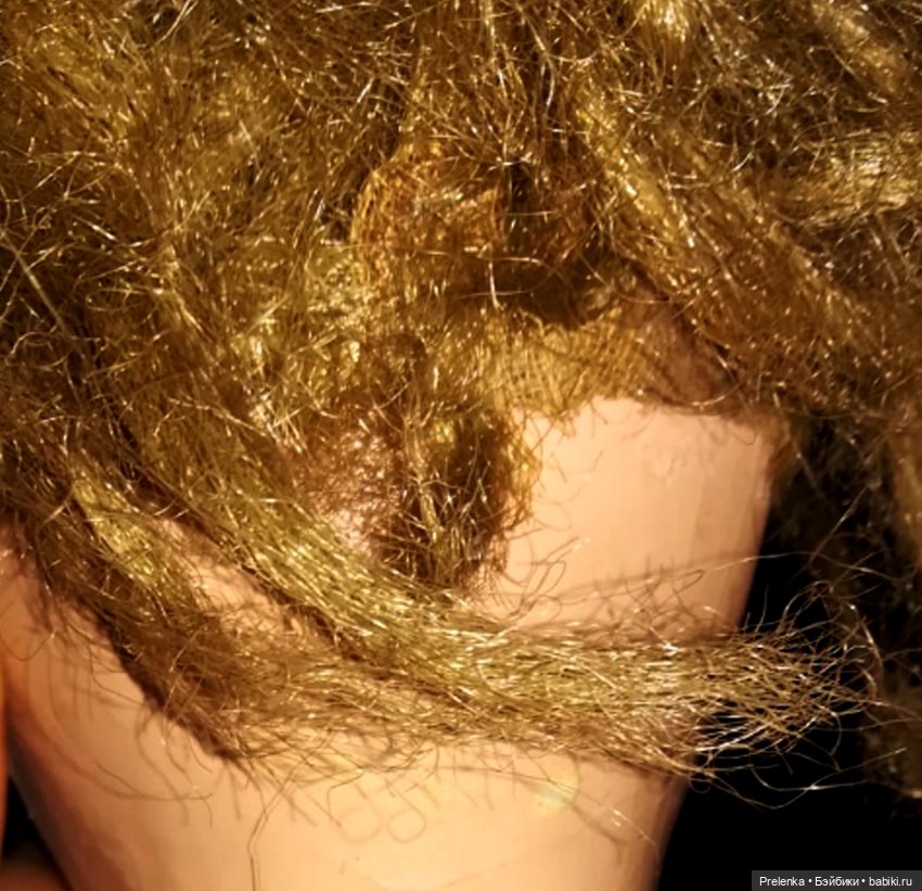 Ещё меня озадачил парик. Тот что был на ней, после стирки, освобождения от клея ( его было слишком много), вычесывания, имеет плачевный вид. Я сделала новый из пакли.