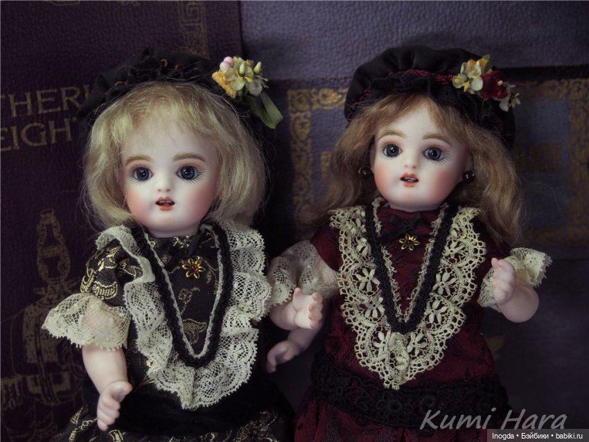 Куми делает, в основном, маленькие реплики кабинетного размера. Для Брю делает тела Шевро, костюмирует кукол сама.