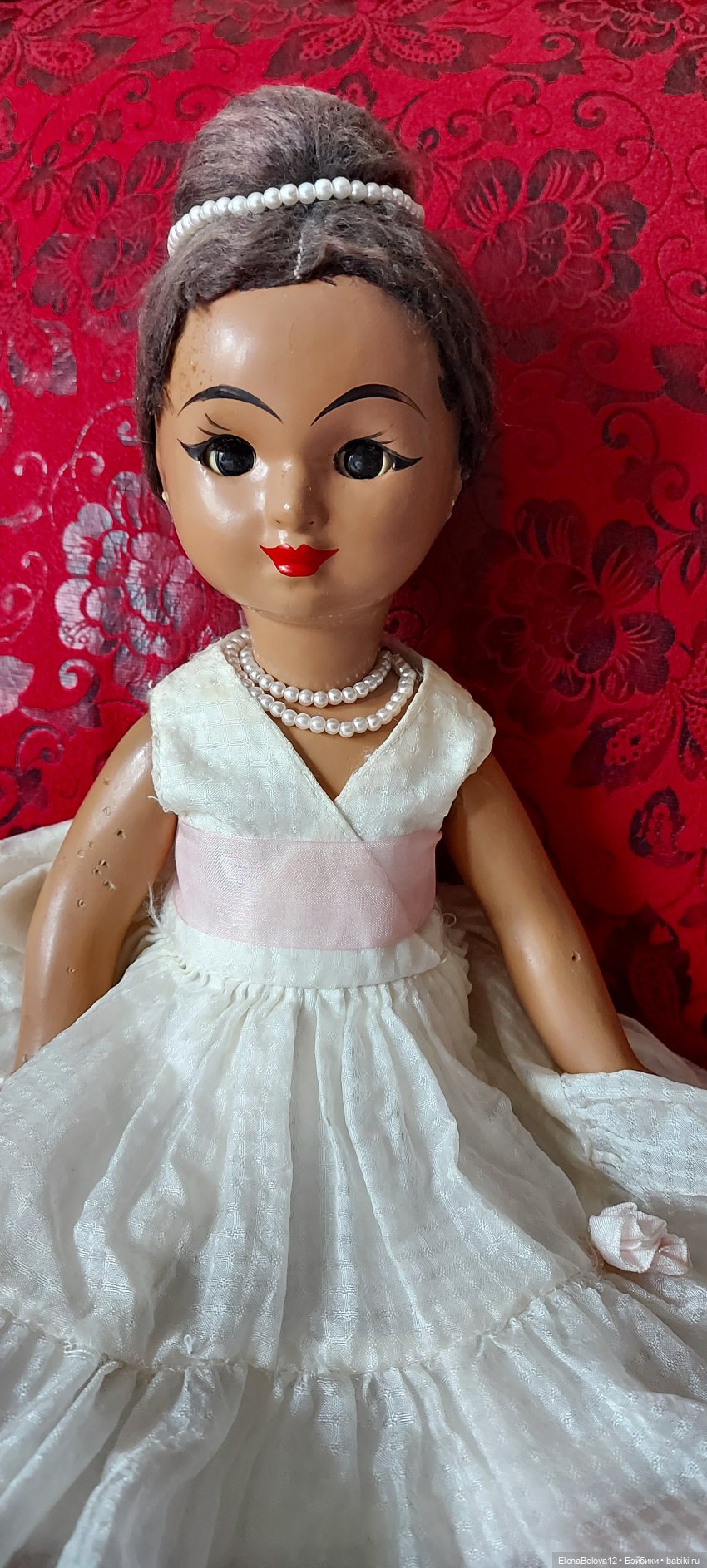 А потом я нашла чудесный сайт «Бейбики» и справила более подходящее платье своей необыкновенной кукле, да еще и паричок, правда это было в самом начале и паричок слегка маловат оказался, но все равно он ей идет.
